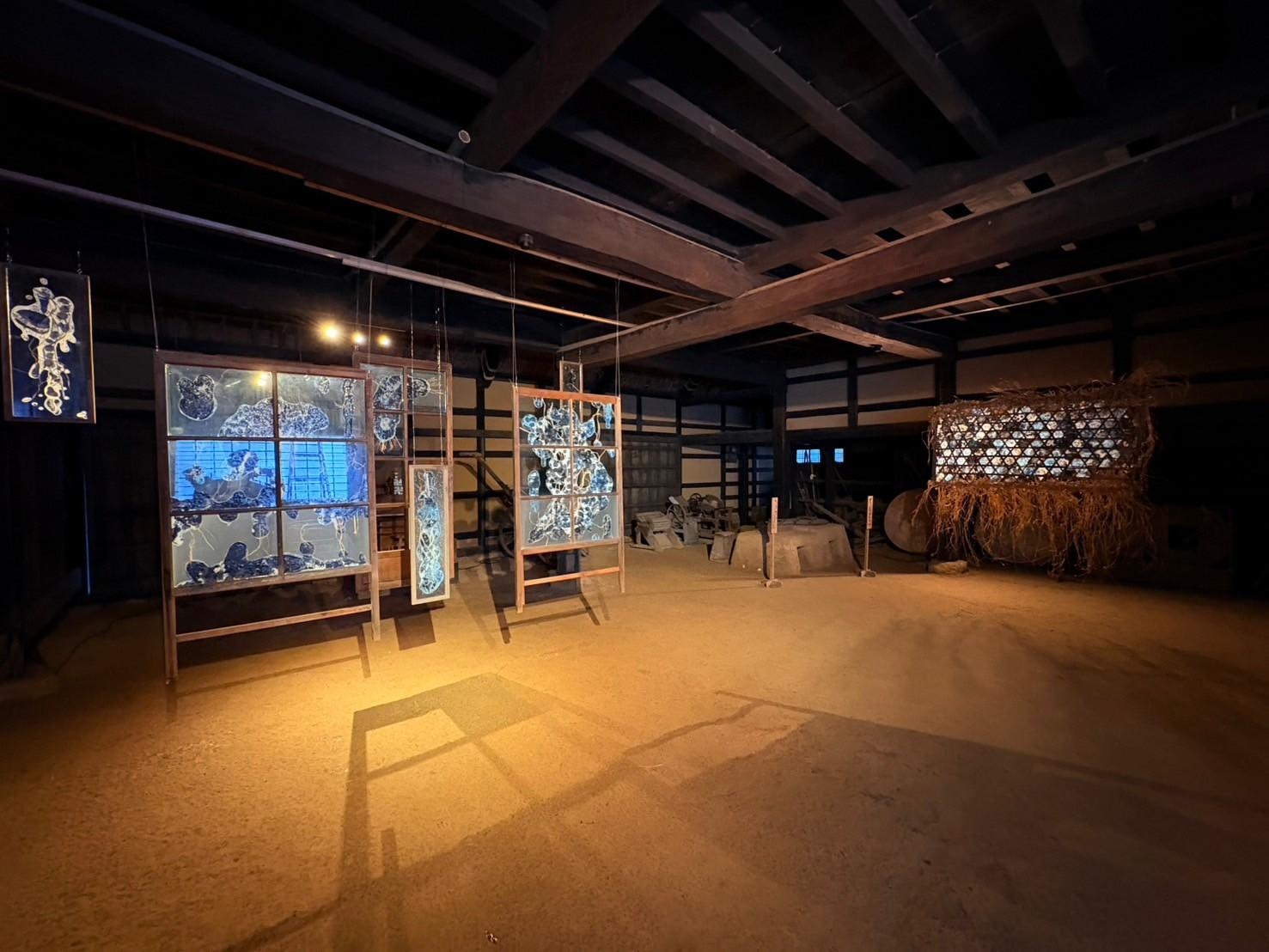 The installation works were exhibited at the Tomizawa Family Residence, a nationally designated important cultural property. (Gunma, Japan)