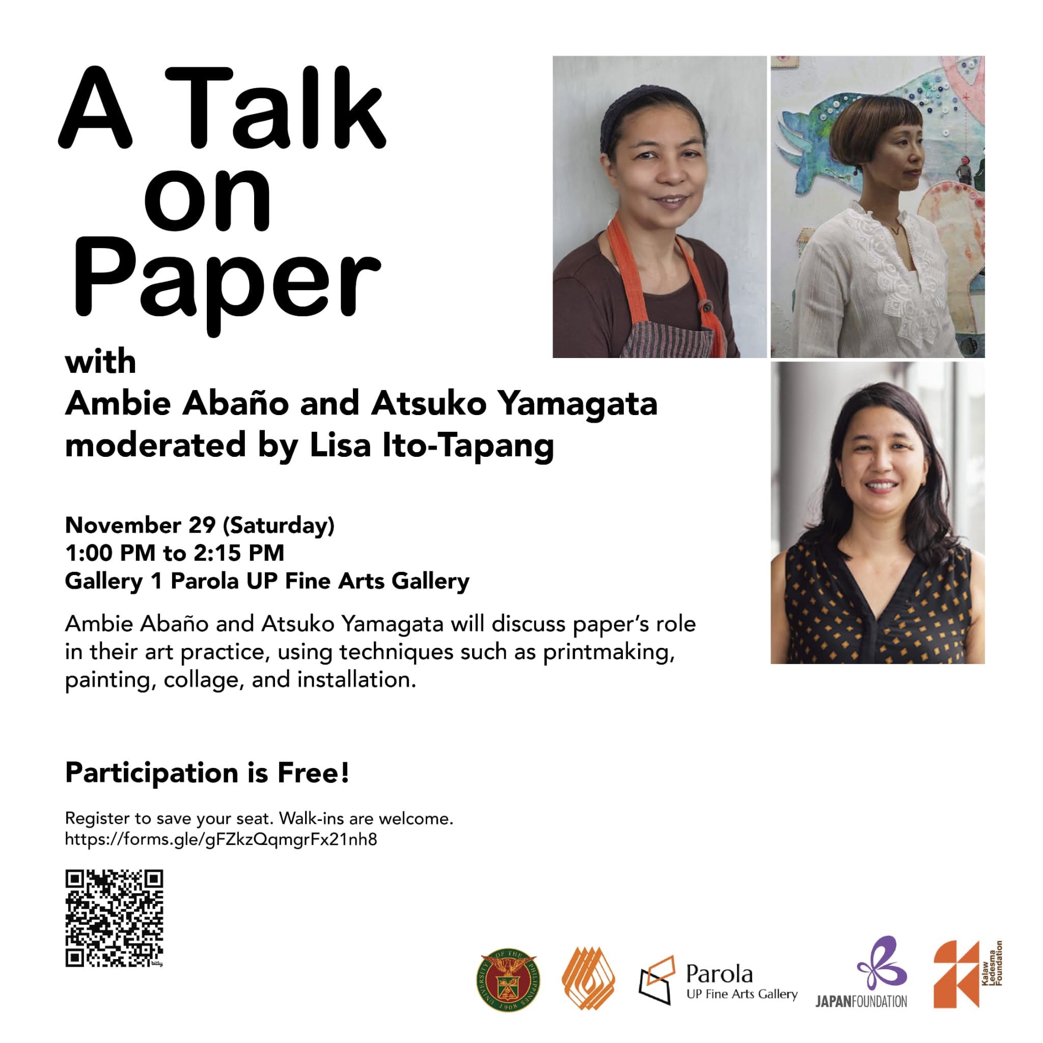 I participate in “A Day with Paper” -a Talk and Workshop organized by Kalaw Ledesma Foundation, University of the Philippines and Japan Foundation.